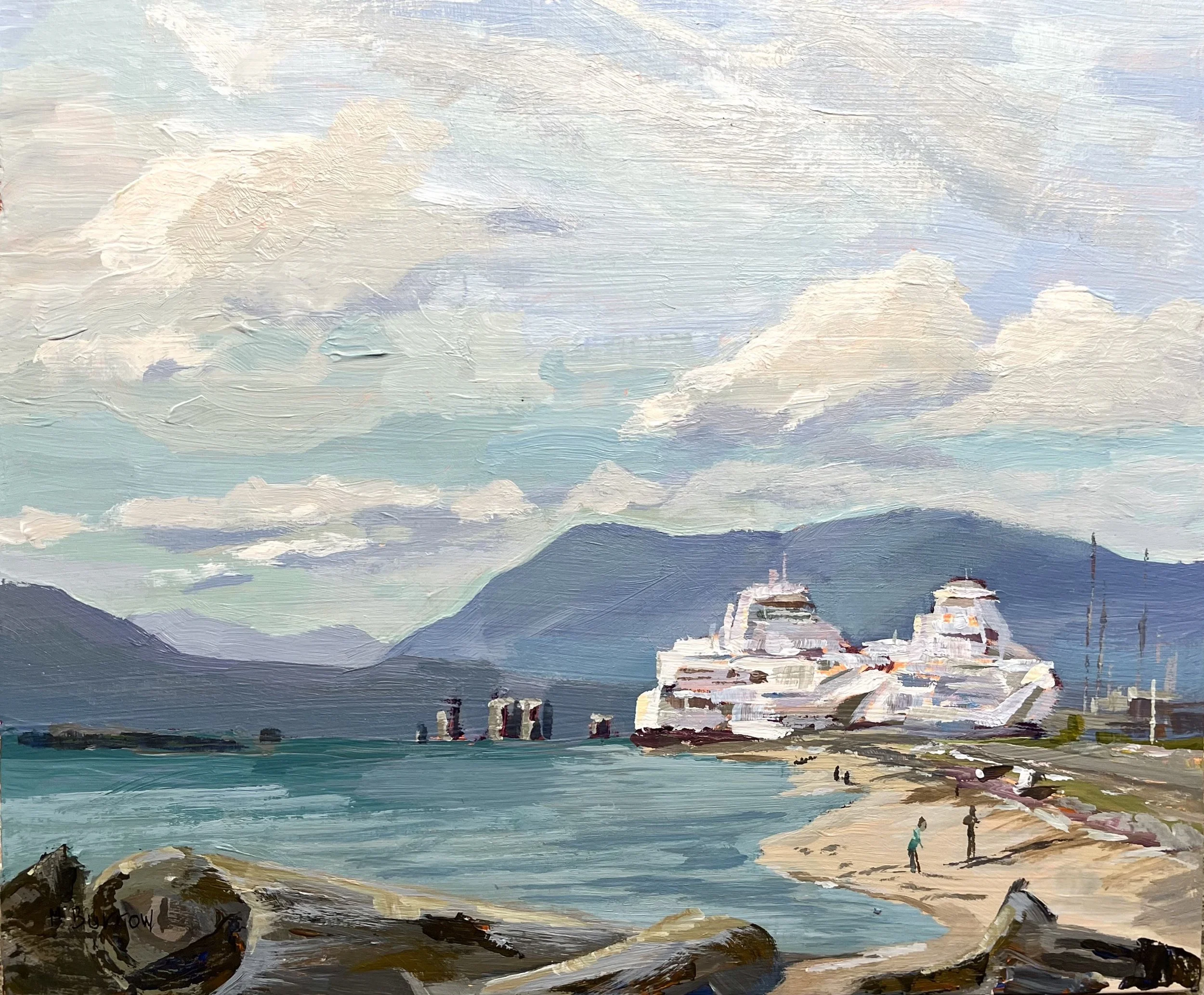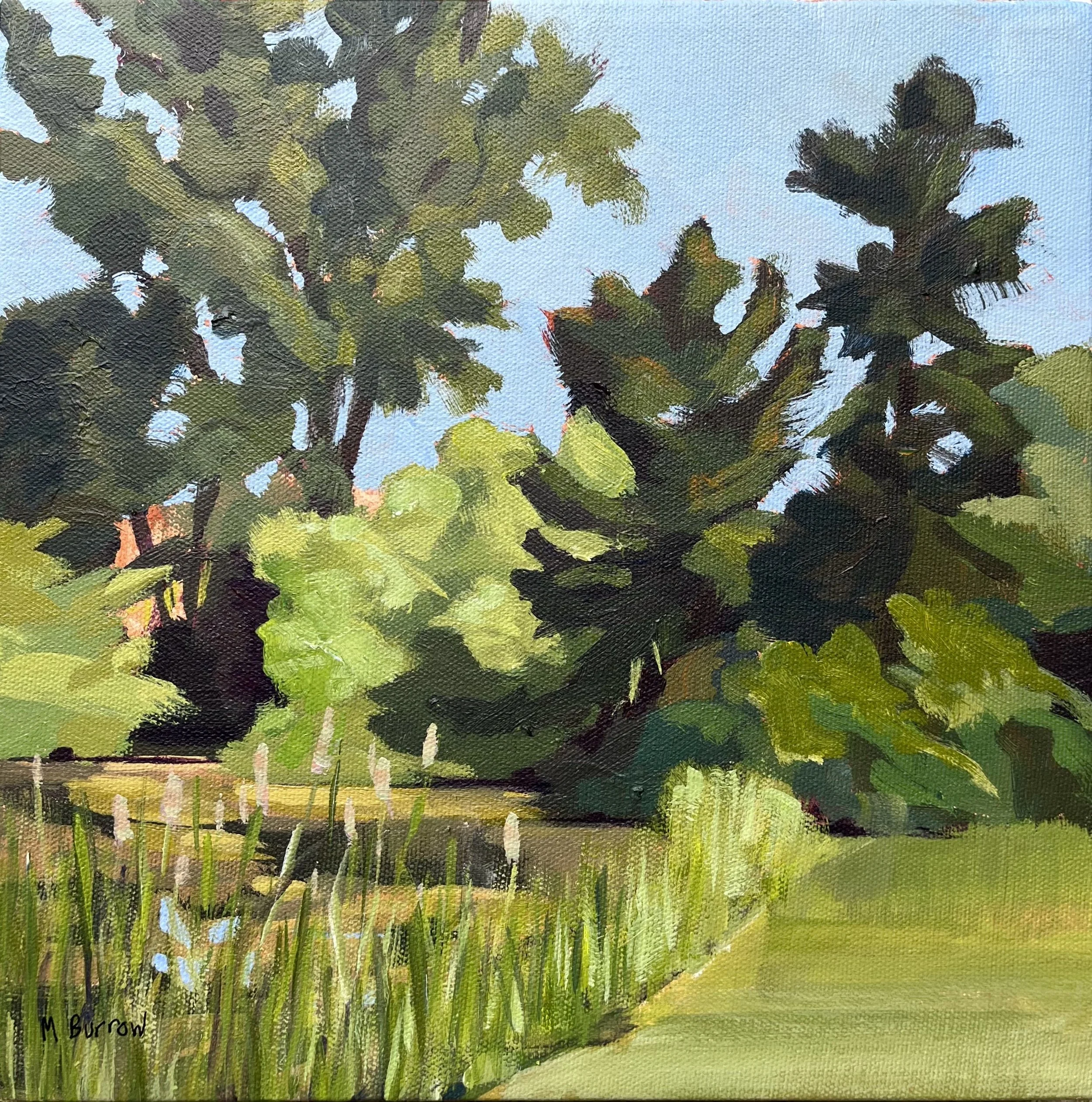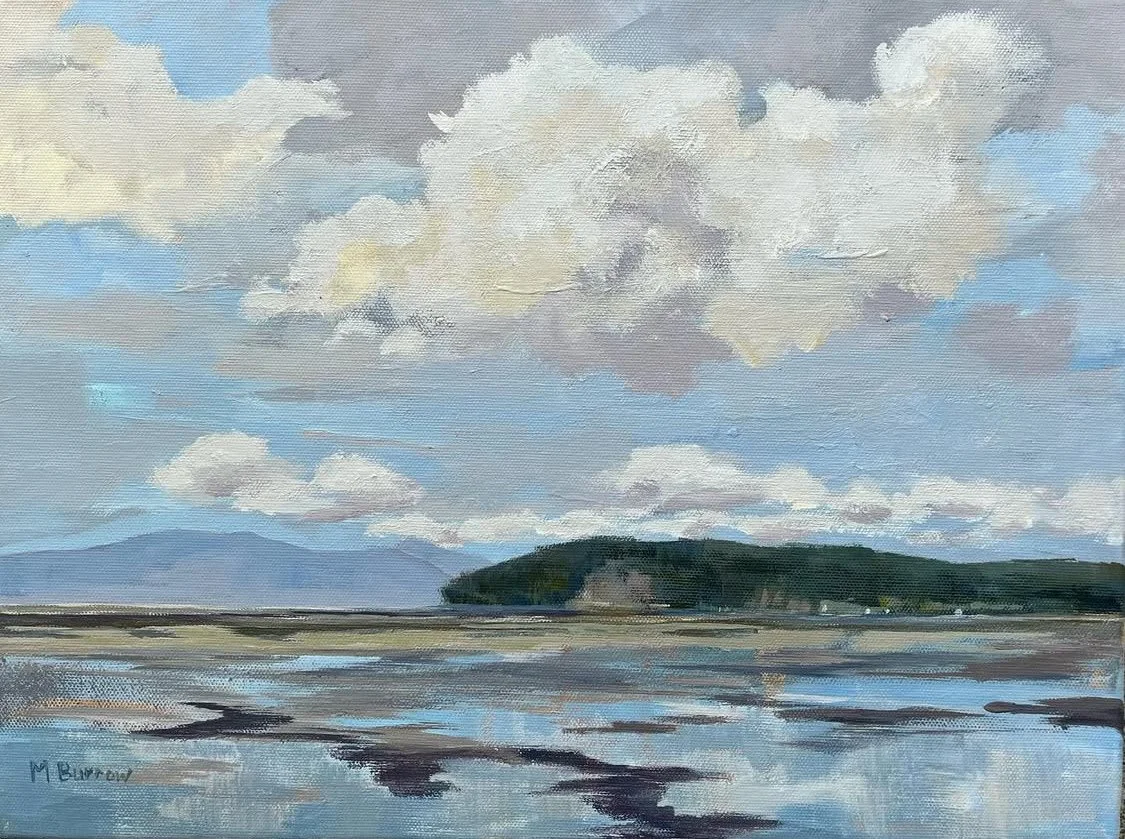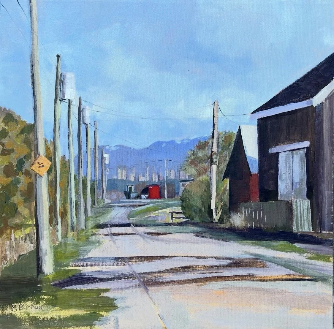 “Monica Burrow has painted local scenes of BC and Delta for 35 years. Most are painted on location outdoors, or studies are done en plein air and worked up in studio.”